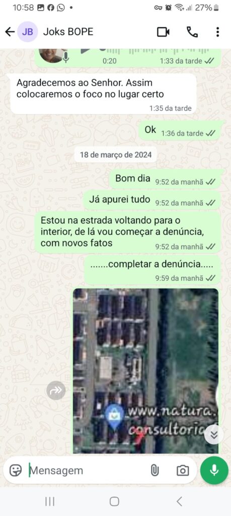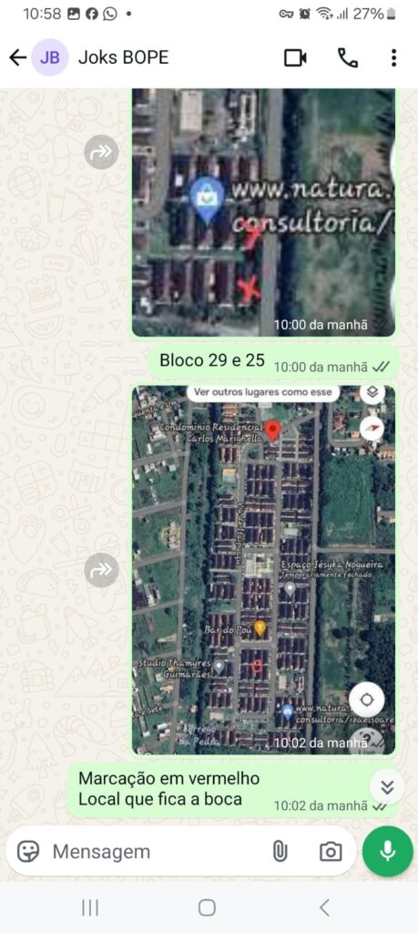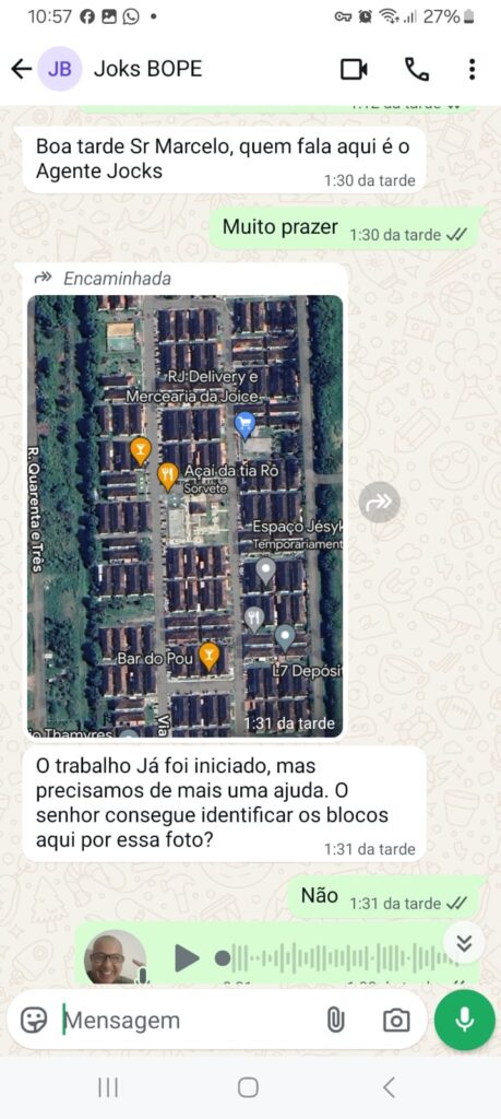 Vejam acima, que o “BOPE” pede detalhes do local, assim, voltei com os Moradores, que atenderam a solicitação, enviando print’s com detalhes, melhor só roubando bala de criança.